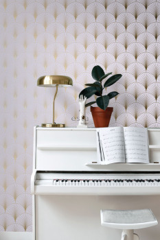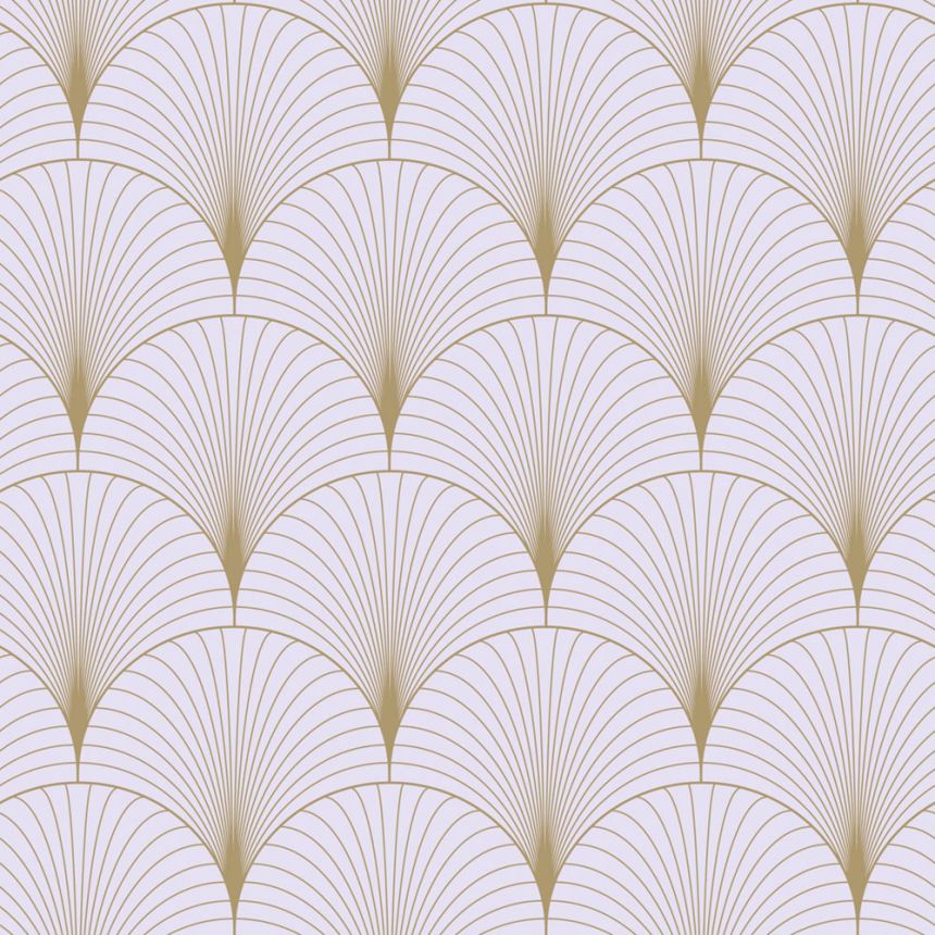 Glatte violette Vliestapete, goldene Konturen.