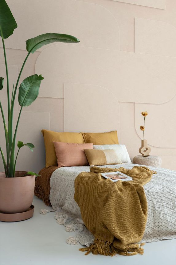 Glatte beige geometrische Vliestapete.