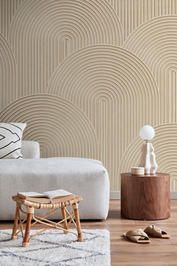 Glatte beige geometrische Vliestapete.