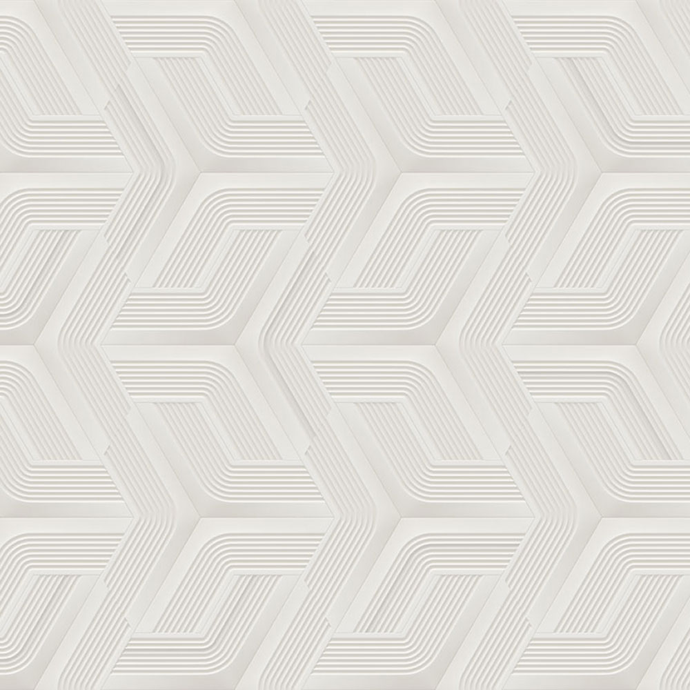 Luxuriöse, unverwechselbar plastische, geometrische Vliestapete mit Vinyloberfläche, elfenbeinfarben, Halbglanz.