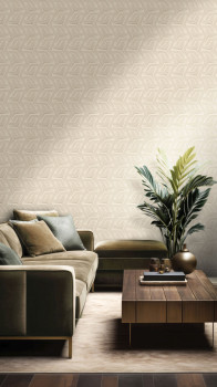 Luxuriöse, unverwechselbar plastische, geometrische Vliestapete mit Vinyloberfläche, Beigetöne, Halbglanz.