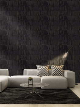 Luxuriöse Vliestapete mit Vinyloberfläche, feine Struktur, schwarz halbglänzend.