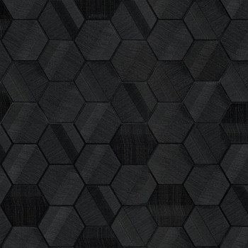 Luxuriöse schwarze geometrische Vliestapete mit Vinyloberfläche, markanter Textur, Sechseckmustern.