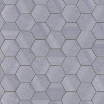 Luxuriöse grau-blaue geometrische Vliestapete mit Vinyloberfläche. Metallischer Glanz, goldene Konturen, ausgeprägte Textur, Sechseckmuster.