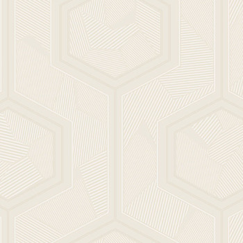 Luxuriöse weiß/ecrufarbene Vliestapet mit Vinyloberfläche, plastisches geometrisches Muster mit metallischem Halbglanz.