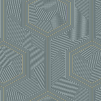 Luxuriöse blaue Vliestapete mit Vinyloberfläche, plastisches geometrisches Muster mit metallischem Halbglanz.
