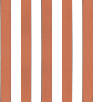 Vliestapete, orange/ziegelrot-weiße Streifen, schmaler schwarzer Streifen.