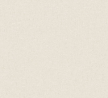 Vliestapete, Stoffstruktur in Natur-Ecrutönen, feine silberne Details.
