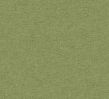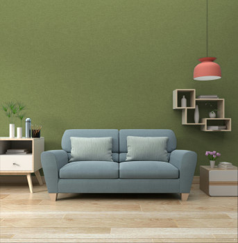 Vliestapete, Stoffstruktur, Grüntöne, silberne Details.