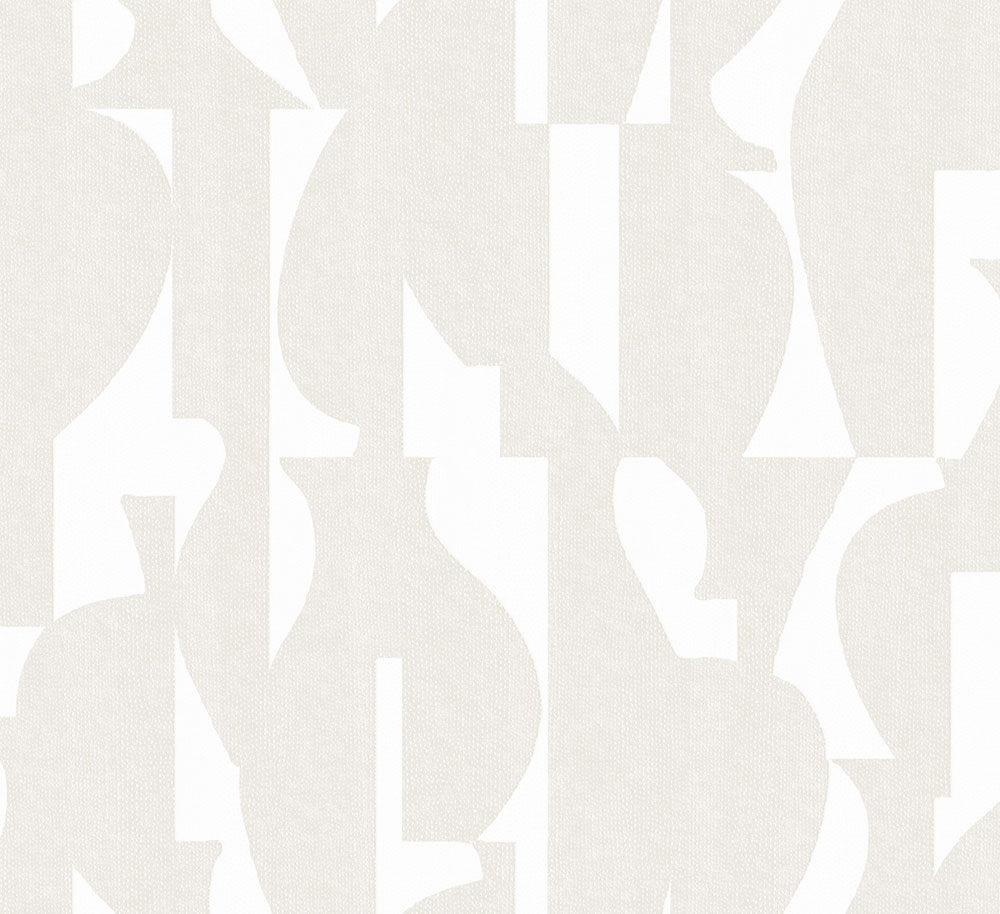 Vliestapete, zart geprägtes, halbglänzendes geometrisches Muster in Cremetönen.