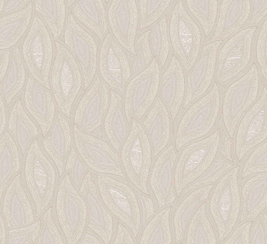 Vliestapete, zart geprägtes gestreiftes Blattmuster in Creme- und Beigetönen.