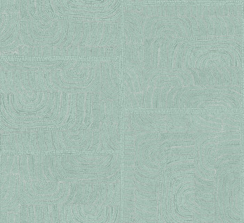 Vliestapete mit zart geprägtem Ethno-Muster in Grüntönen.
