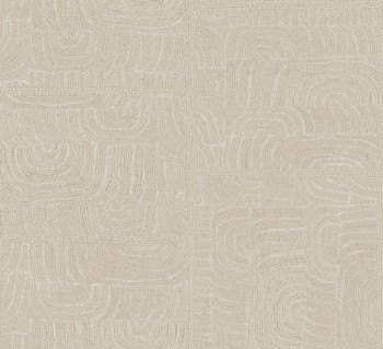 Vliestapete mit dezent geprägtem Ethno-Muster in Beigetönen.