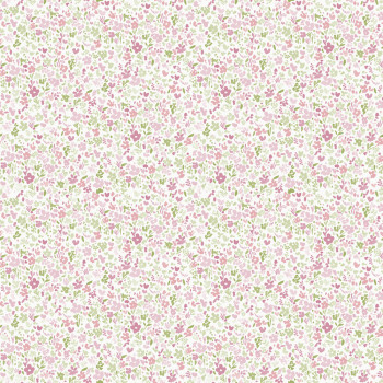 Weiße Vliestapete, Blumenmuster in Grün- und Rosatönen.