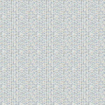 Geometrische Vliestapete, Zickzackmuster in Blau-, Türkis- und Brauntönen.