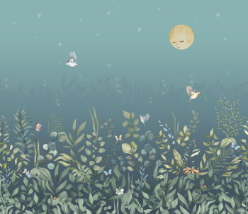 Kinderzimmer Tapete Wandbilder, Motive von Pflanzen, Vögeln und Schmetterlingen.
