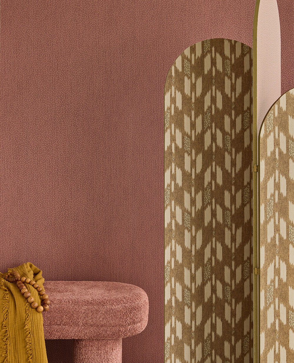 Mit Solange holen Sie sich die Lebensfreude traditioneller afrikanischer Batikmuster direkt an Ihre Wände. Oder entdecken Sie den modernen Nomadenstil mit ikat-inspirierten Designs. Wie wäre es mit einem eleganten Zickzack-Muster mit feinen metallischen Akzenten – eine Hommage an die prachtvollen Kuba-Stoffe? Die Kollektion begeistert mit einer Farbpalette, die an natürliche Töne von Raffiabast und Batikteppichen erinnert – von lebhaften Farben bis zu gedeckten Erdtönen.