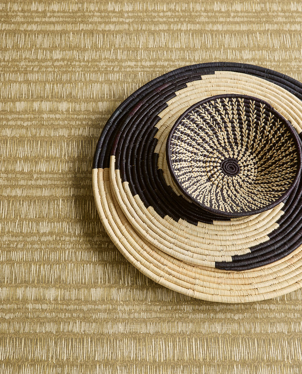 Mit Solange holen Sie sich die Lebensfreude traditioneller afrikanischer Batikmuster direkt an Ihre Wände. Oder entdecken Sie den modernen Nomadenstil mit ikat-inspirierten Designs. Wie wäre es mit einem eleganten Zickzack-Muster mit feinen metallischen Akzenten – eine Hommage an die prachtvollen Kuba-Stoffe? Die Kollektion begeistert mit einer Farbpalette, die an natürliche Töne von Raffiabast und Batikteppichen erinnert – von lebhaften Farben bis zu gedeckten Erdtönen.