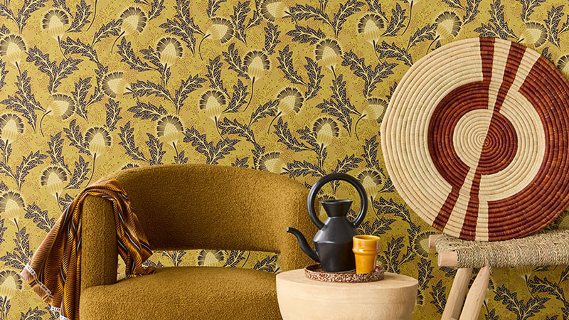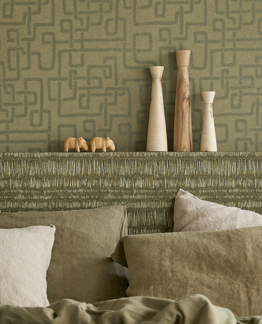 Mit Solange holen Sie sich die Lebensfreude traditioneller afrikanischer Batikmuster direkt an Ihre Wände. Oder entdecken Sie den modernen Nomadenstil mit ikat-inspirierten Designs. Wie wäre es mit einem eleganten Zickzack-Muster mit feinen metallischen Akzenten – eine Hommage an die prachtvollen Kuba-Stoffe? Die Kollektion begeistert mit einer Farbpalette, die an natürliche Töne von Raffiabast und Batikteppichen erinnert – von lebhaften Farben bis zu gedeckten Erdtönen.