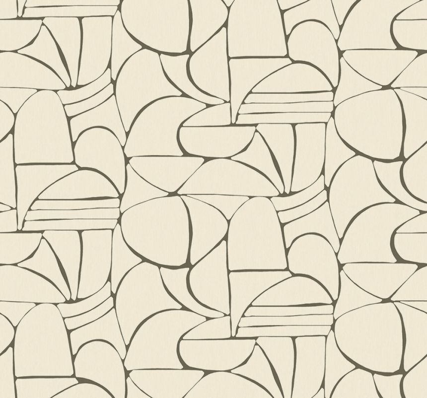 Cremefarbene Vlies-Fototapete, schwarze Konturen.