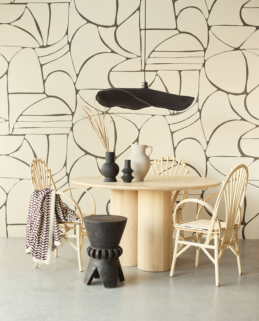 Mit Solange holen Sie sich die Lebensfreude traditioneller afrikanischer Batikmuster direkt an Ihre Wände. Oder entdecken Sie den modernen Nomadenstil mit ikat-inspirierten Designs. Wie wäre es mit einem eleganten Zickzack-Muster mit feinen metallischen Akzenten – eine Hommage an die prachtvollen Kuba-Stoffe? Die Kollektion begeistert mit einer Farbpalette, die an natürliche Töne von Raffiabast und Batikteppichen erinnert – von lebhaften Farben bis zu gedeckten Erdtönen.