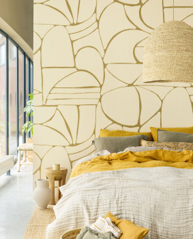 Vliest-Fototapete, beiger Hintergrund, ockerfarbene Konturen.