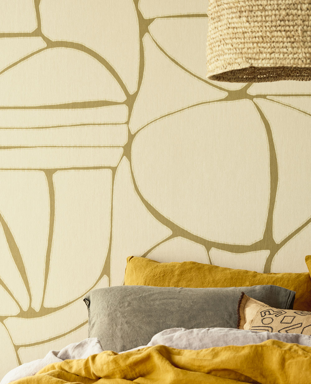 Mit Solange holen Sie sich die Lebensfreude traditioneller afrikanischer Batikmuster direkt an Ihre Wände. Oder entdecken Sie den modernen Nomadenstil mit ikat-inspirierten Designs. Wie wäre es mit einem eleganten Zickzack-Muster mit feinen metallischen Akzenten – eine Hommage an die prachtvollen Kuba-Stoffe? Die Kollektion begeistert mit einer Farbpalette, die an natürliche Töne von Raffiabast und Batikteppichen erinnert – von lebhaften Farben bis zu gedeckten Erdtönen.