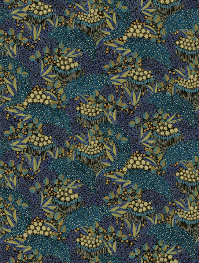 Vliest-Fototapete, Pflanzen und Blätter in den Farben Blau, Türkis, Grün.