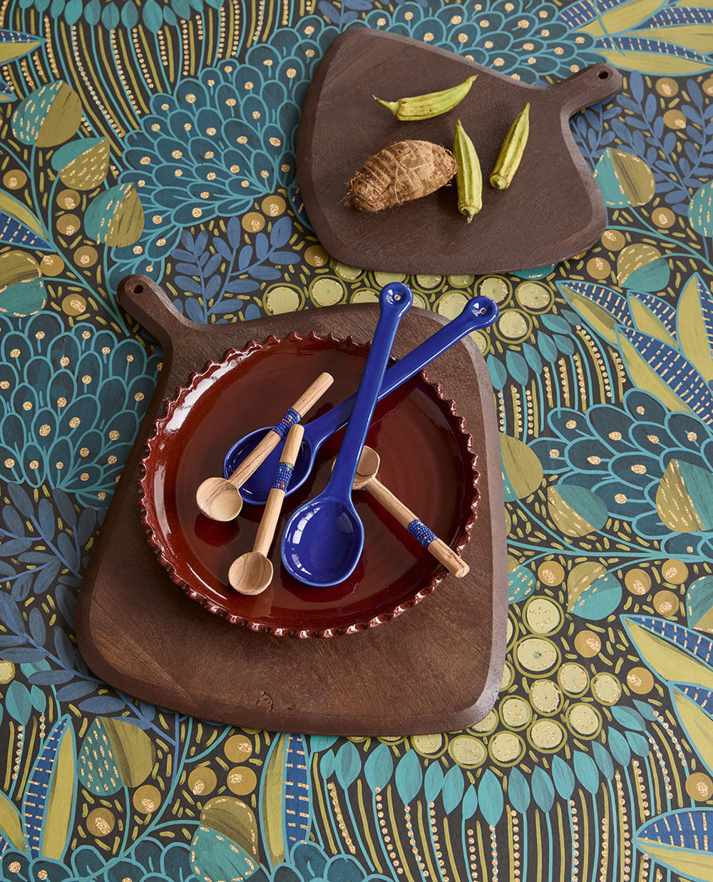 Mit Solange holen Sie sich die Lebensfreude traditioneller afrikanischer Batikmuster direkt an Ihre Wände. Oder entdecken Sie den modernen Nomadenstil mit ikat-inspirierten Designs. Wie wäre es mit einem eleganten Zickzack-Muster mit feinen metallischen Akzenten – eine Hommage an die prachtvollen Kuba-Stoffe? Die Kollektion begeistert mit einer Farbpalette, die an natürliche Töne von Raffiabast und Batikteppichen erinnert – von lebhaften Farben bis zu gedeckten Erdtönen.