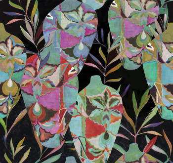 Vlies-Fototapete, Amphor - Motive aus Amphoren, Blättern und Blumen.