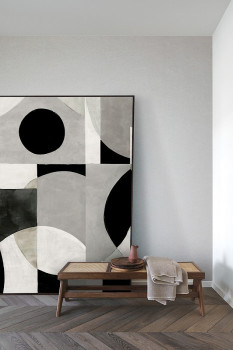 Vlies-Fototapete, geometrisches Muster, in Grau-, Grau-Beige- und Schwarztönen.