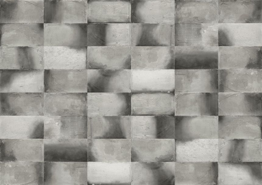 Vlies-Fototapete, Nachahmung von Wandfliesen in Grautönen.