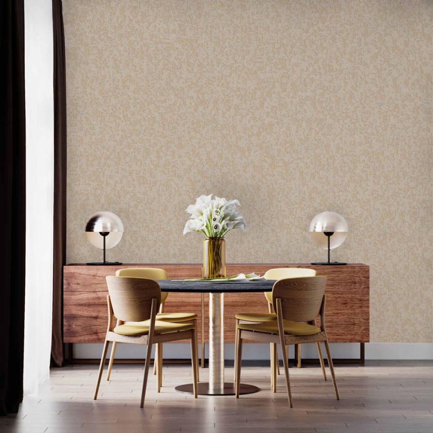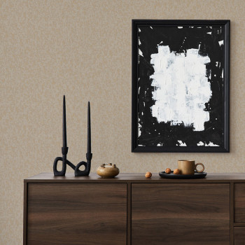 Luxuriöse braun-beige Vliestapete, Stoffimitat, stellenweise mit kleinem Goldglitzer.