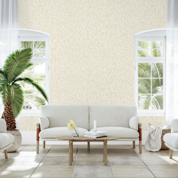 Luxuriöse cremefarbene Vliestapete, Stoffimitat, stellenweise mit kleinem Goldglitzer.
