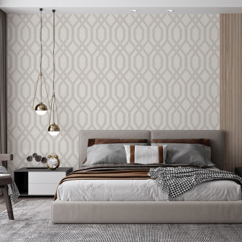 Luxuriöse halbglänzende Vliestapete mit Vinyloberfläche, cremefarbener Hintergrund, geprägte Konturen in Silber und Goldbeige.