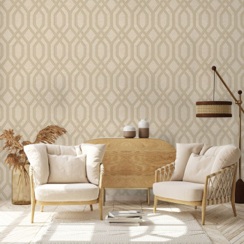 Luxuriöse halbglänzende Vliestapete mit Vinyloberfläche, beigem Hintergrund, geprägte Konturen in Silber und Braun.
