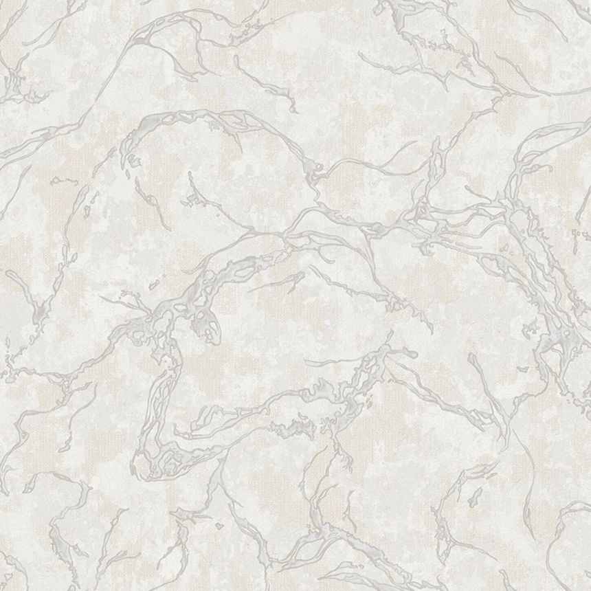 Luxuriöse halbglänzende Vliestapete mit Vinyloberfläche, cremefarbenem Hintergrund mit Perlglanz, , Marmorierung mit Silberglanz.