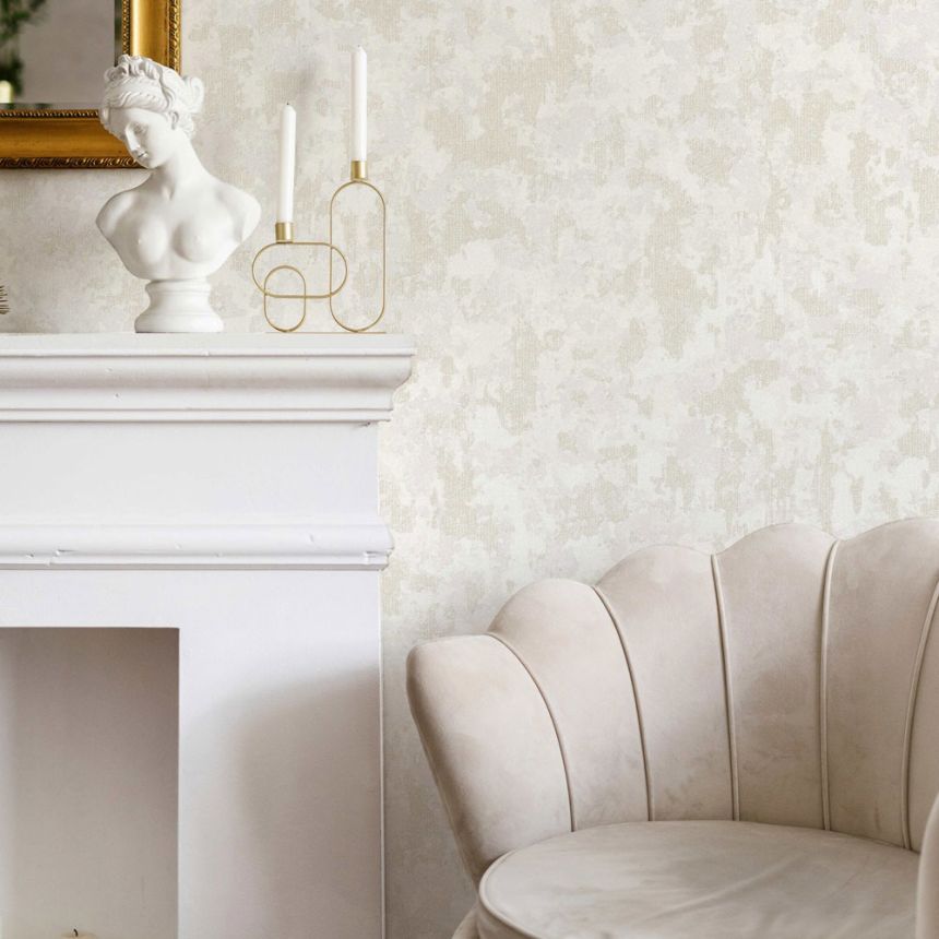 Luxuriöse Vliestapete mit Vinyloberfläche, Stuckmuster, cremefarben halbglänzend.