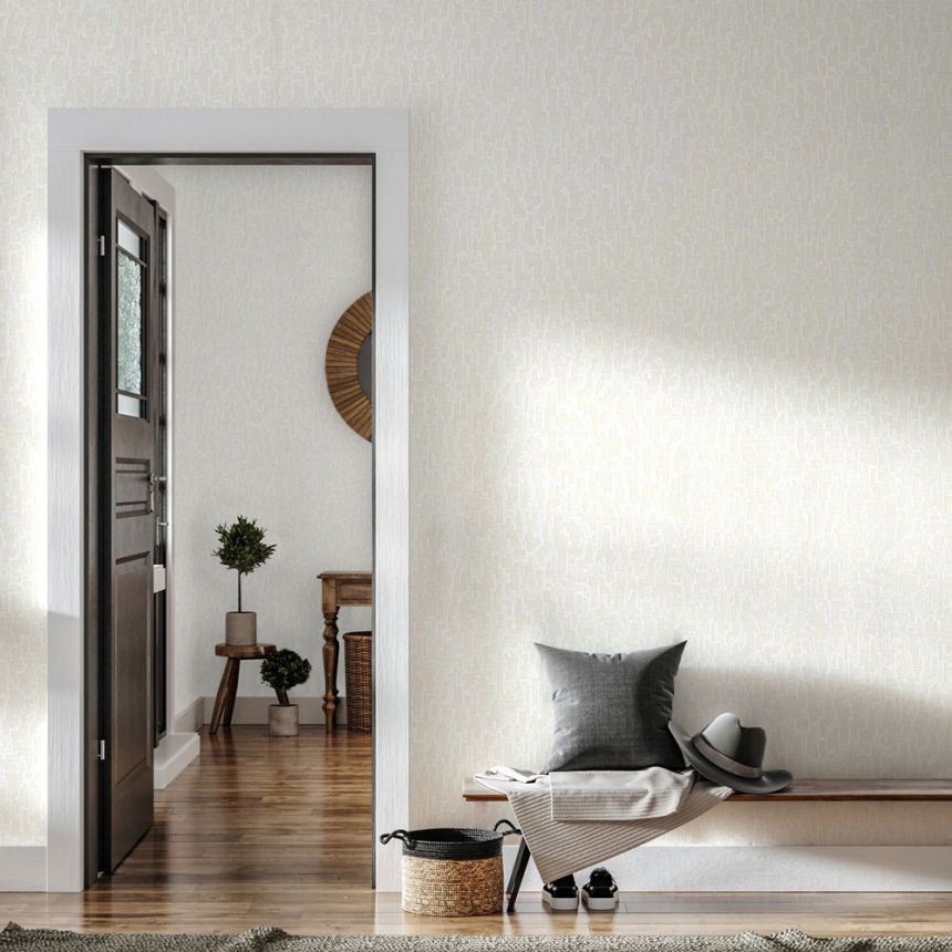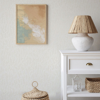 Vliestapete mit Vinyloberfläche, Stoffimitat in Cremetönen.