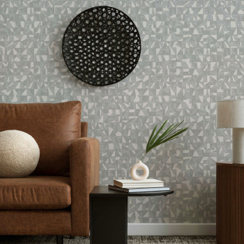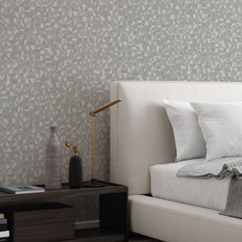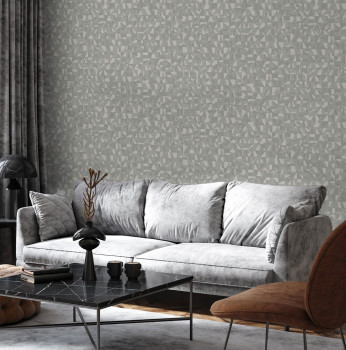 Geometrische Vliestapete mit Vinyloberfläche, effektvoller Strukturwechsel, Grau-Silber-Töne.