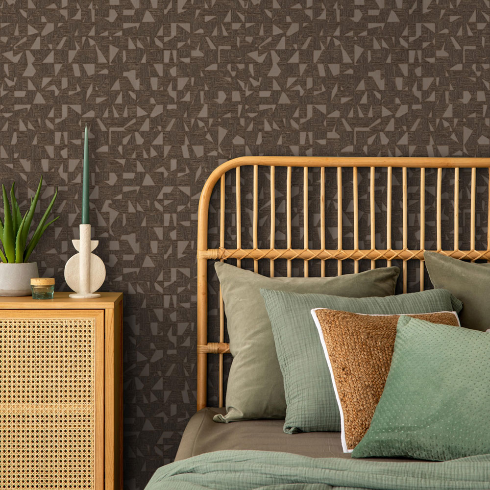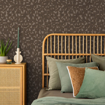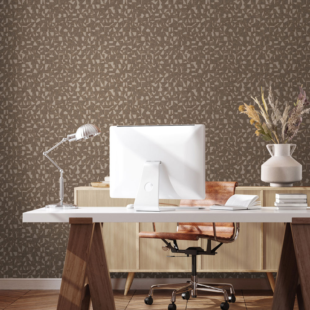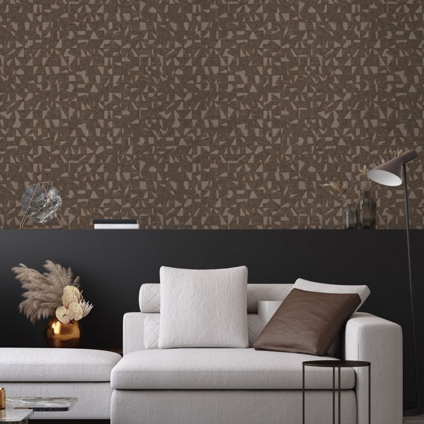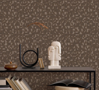 Geometrische Vliestapete mit Vinyloberfläche, effektvoller Strukturwechsel, Brauntöne mit bronzenen Reflexen.