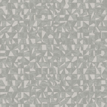 Geometrische Vliestapete mit Vinyloberfläche, effektvoller Strukturwechsel, Grau- und Grau-Silbertöne.