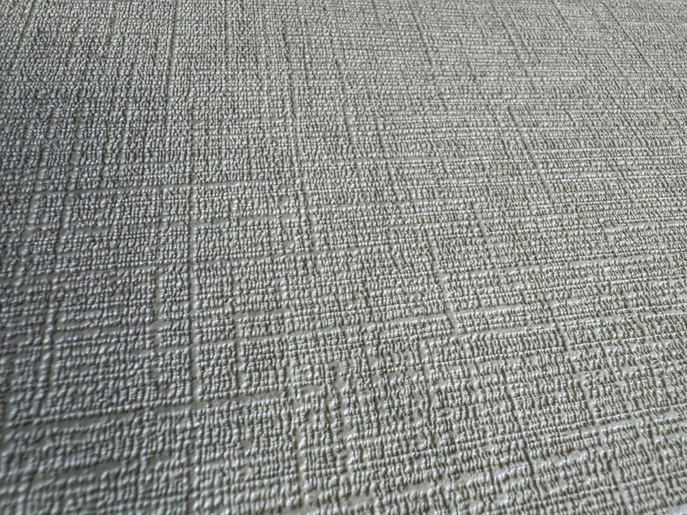 Grüne Vliestapete mit Vinyloberfläche, feine Stoffstruktur.
