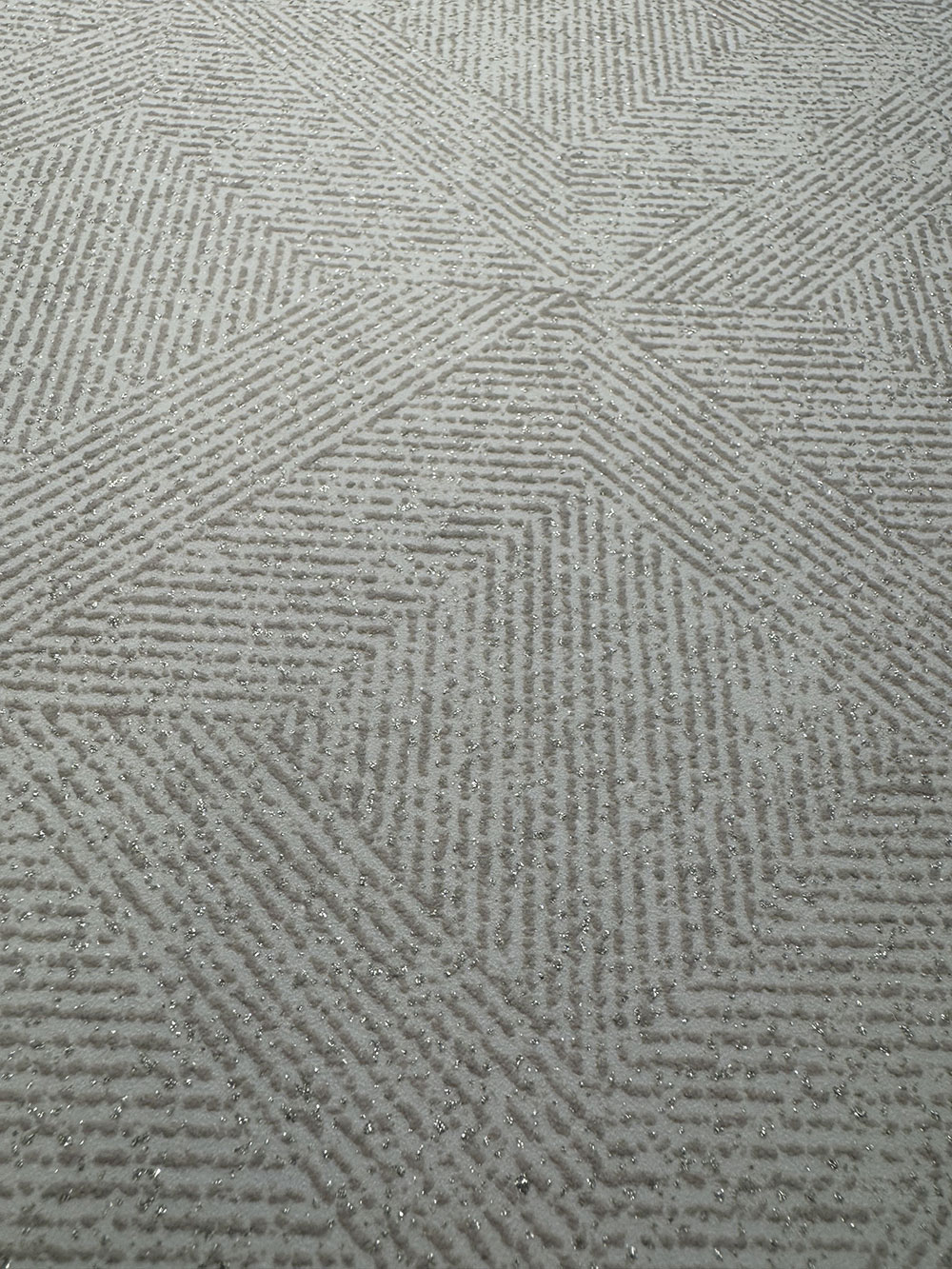 Geometrische Vliestapete, Beige- und Cremetöne, kleiner metallischer Glitzer.