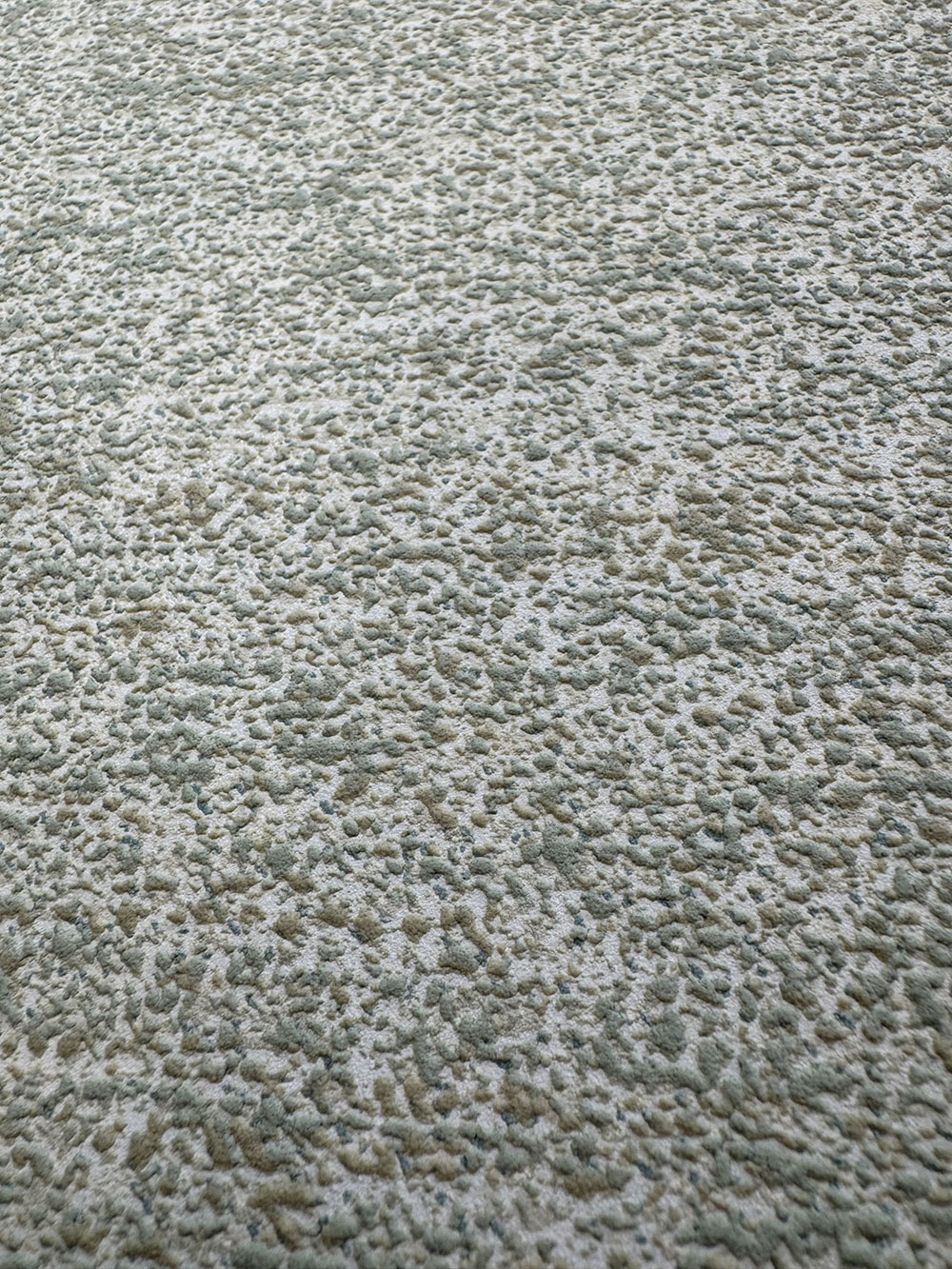 Grüne Vliestapete, gröbere geprägte Struktur.