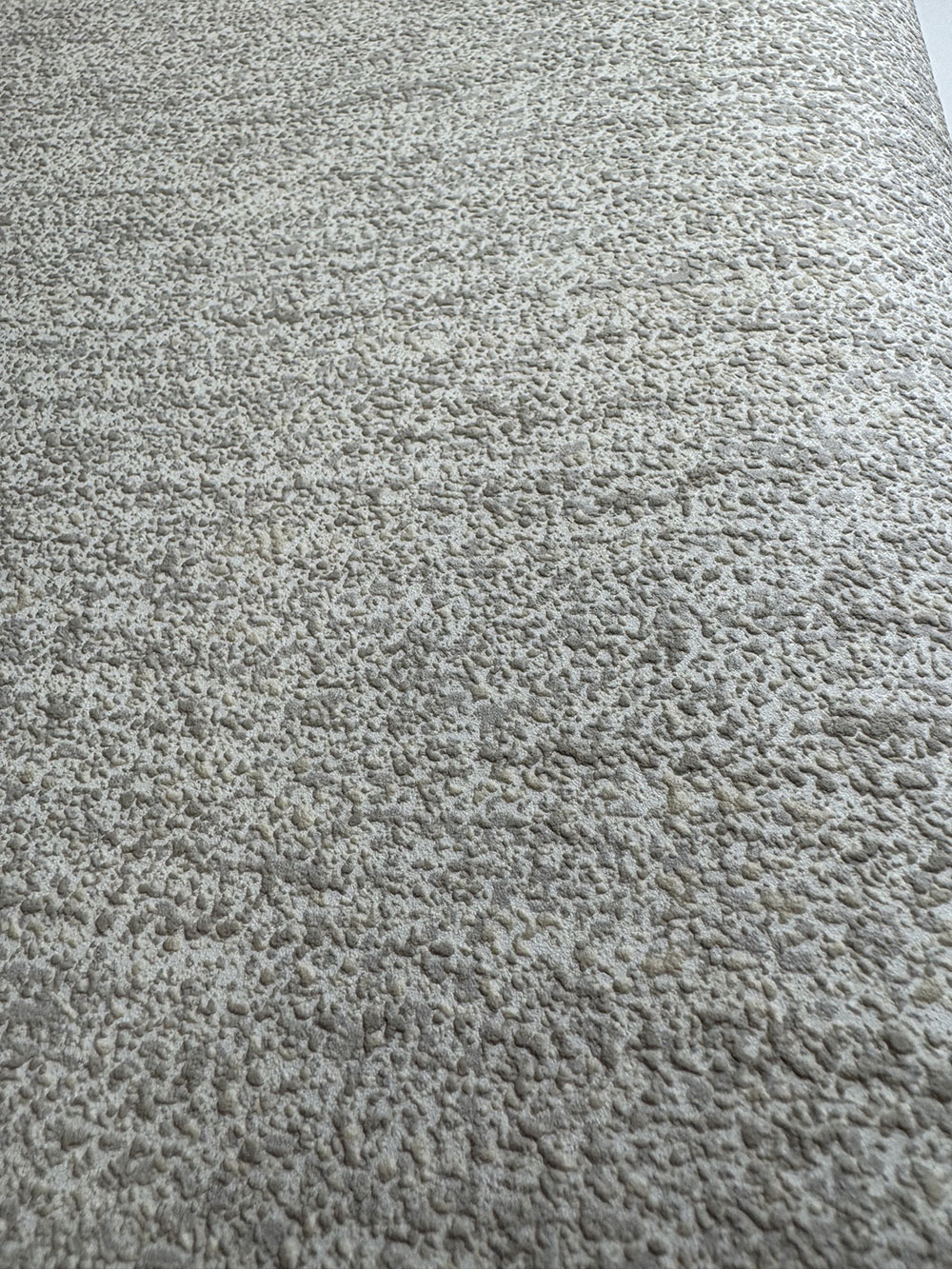 Grau-beige Vliestapete, gröbere geprägte Struktur.