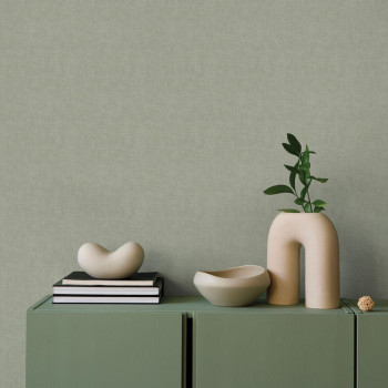 Grün / Sage /Vliestapete, Imitation eines gröberen Stoffes.