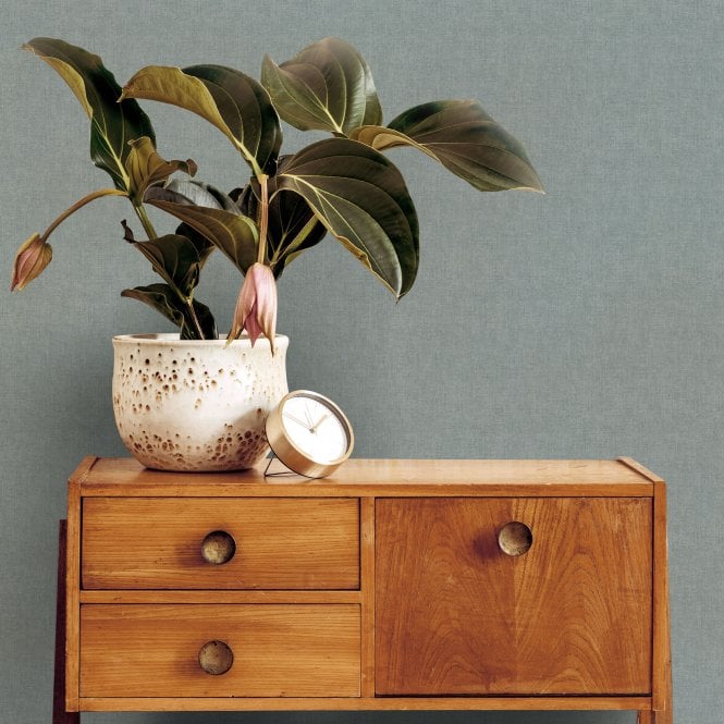 Blaue ( peacock ) Vliestapete, Imitation von gröberem Stoff.