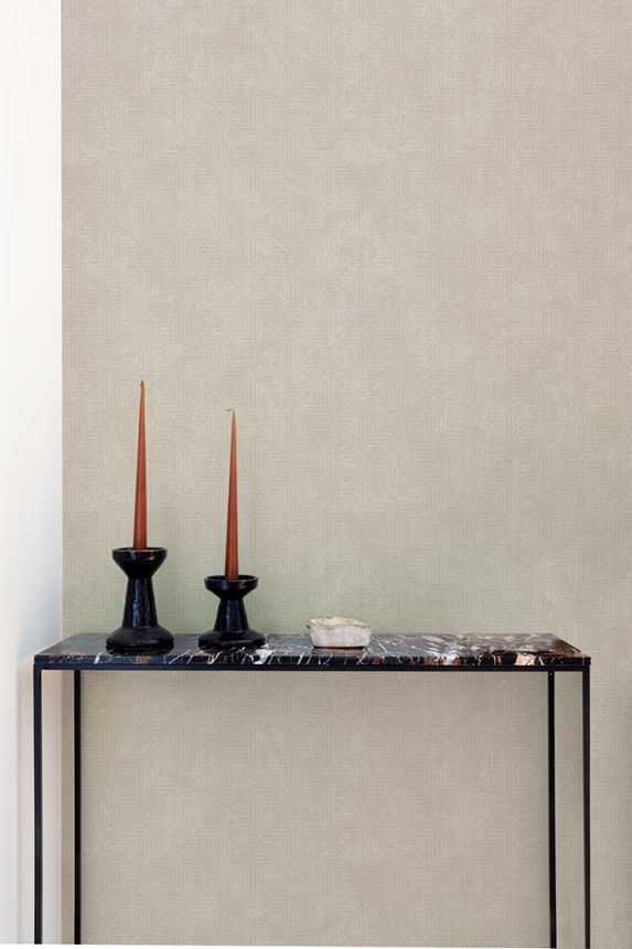 Beigefarbene Vliestapete mit feiner geprägter Textur.