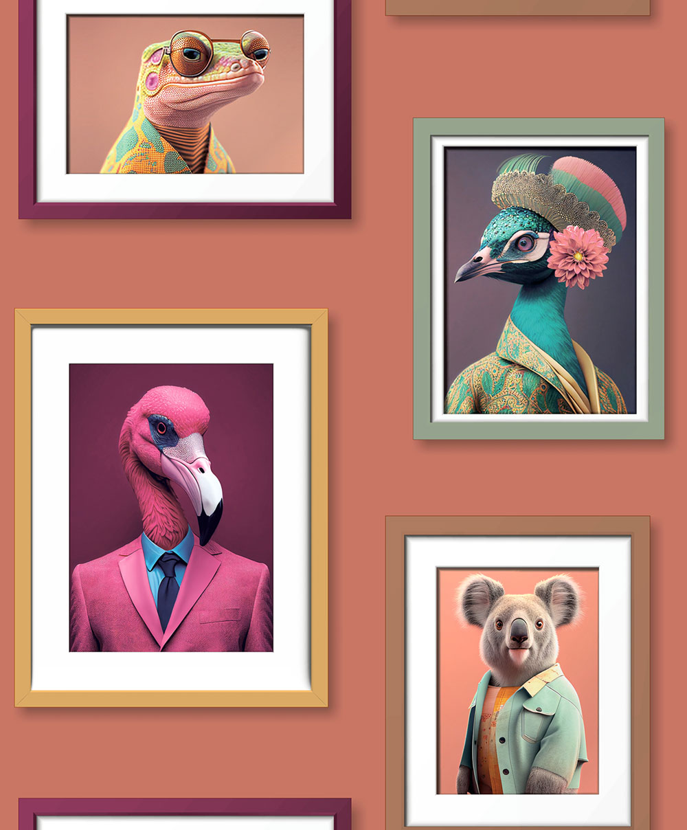 Ob sanfte Pastelltöne für ein elegantes Ambiente oder ausgefallene Motive wie Tiere im Anzug – die Artfice-Kollektion bietet vielfältige Designs, die für Gesprächsstoff sorgen und jedem Raum eine besondere Ausstrahlung verleihen.